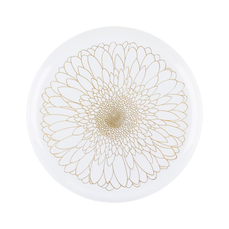 - WHITE & GOLD DESIGN ROUND PLATES: Whether it's an at home party or corporate event, these white and gold round plastic plates will add to your decor and your table setting. With their beautiful white color and gold blossom design they are sure to be a hit! These plates pair great with our 6.3-inch and 8-inch plates of the same style! Setup your next dinner table in a breeze with style!