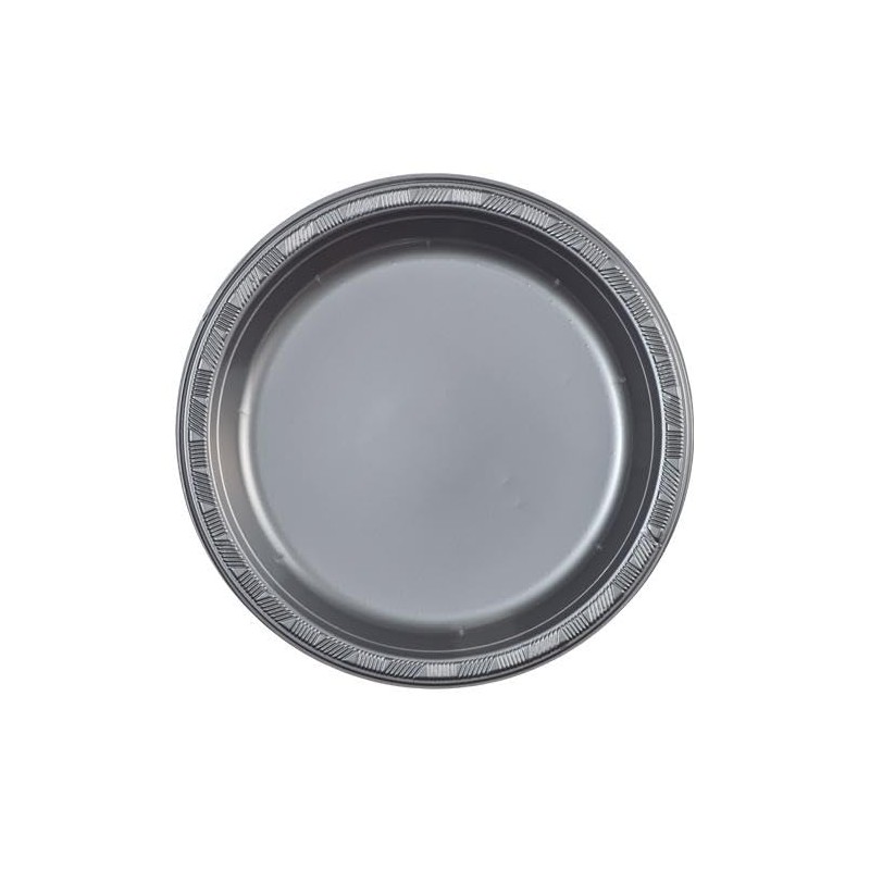 - 10 Inch Silver Round Dinner Plastic Plates – These durable plastic dinner plates measure 10 inches, offering ample space for entrees, salads, or full course meals. Perfect for weddings, birthdays, catering services, and everyday gatherings with an elegant, reusable appearance.