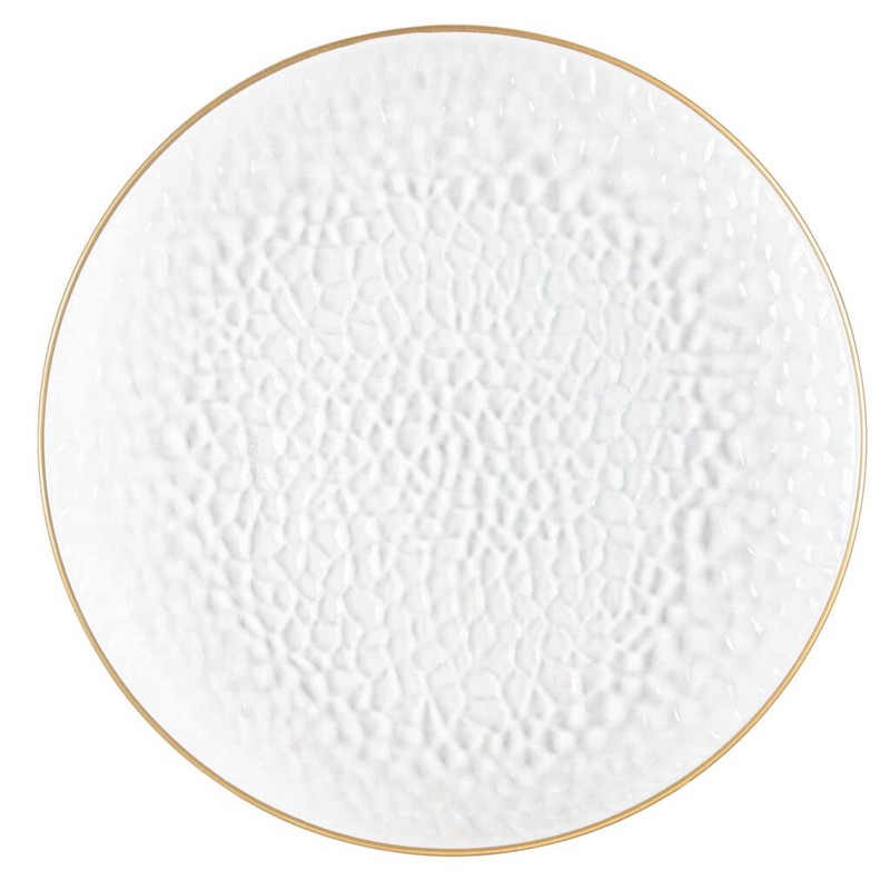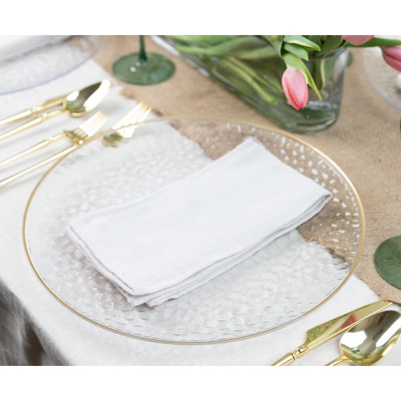 13 inch Round Translucent Hammered Clear with Gold Rim Plastic Dinner Charger Plates - Party Disposable Plastic Plates