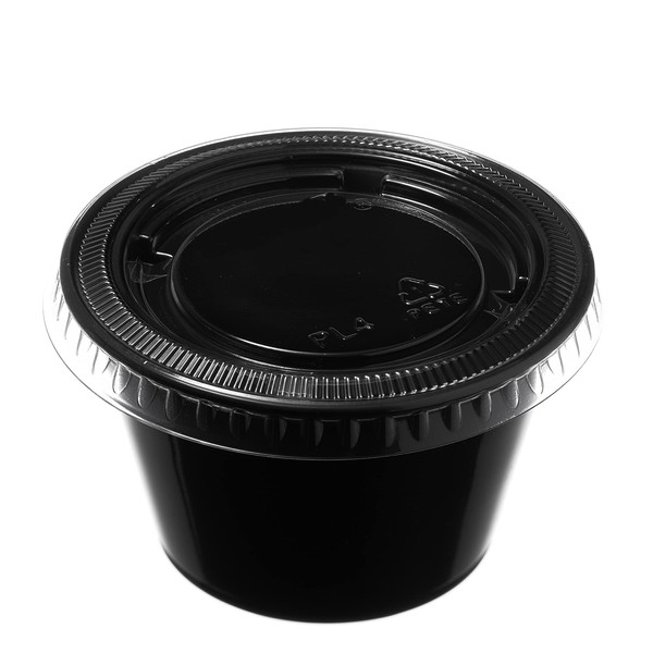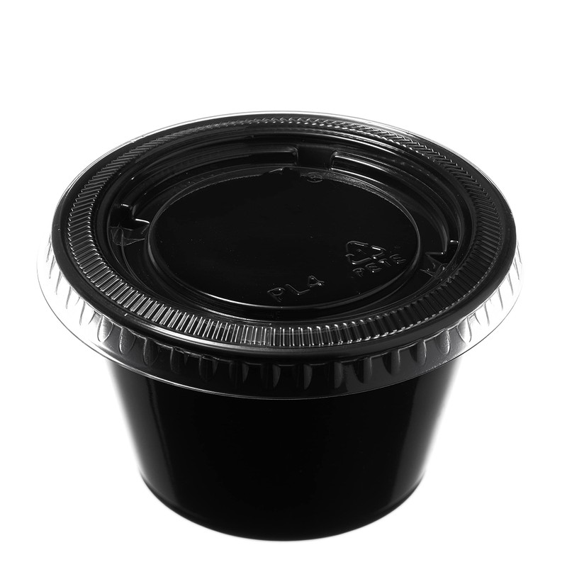 EcoQuality 4oz Black Plastic Condiment / Soufflé Containers with Lids