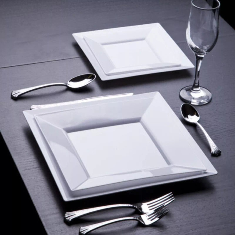 Hosting a formal dinner or catered event? With the straight lines and modern simplicity of these square hard plastic plates and bowls. The Splendid Collection lends a neat, crisp look to any table setting, a perfect choice for high end dining.