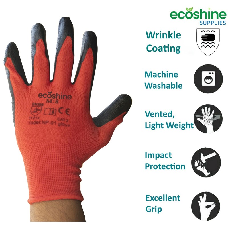 Ecoshine Supplies 24 Pairs work Gloves Red Nitrile Coated Gloves, Heavy Duty Non-Slip Grip for Building and Gardening Warehouse Gloves PREMIUM Quality (X-Large/10)