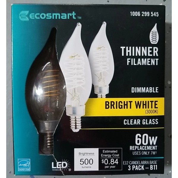EcoSmart 60W Dimmable LED Vintage Edison Light Bulb Bright White (3-Pack)