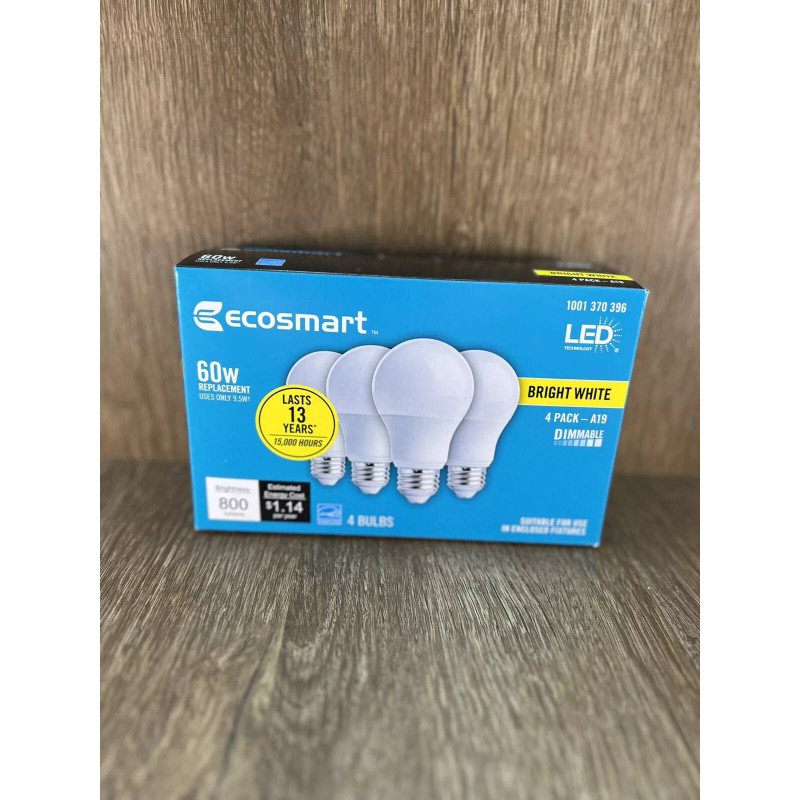 Ecosmart 60W Equiv. A19 Dimmable LED Light Bulb Bright White 4-Pack. Condition is New. Shipped with USPS Ground Advantage.