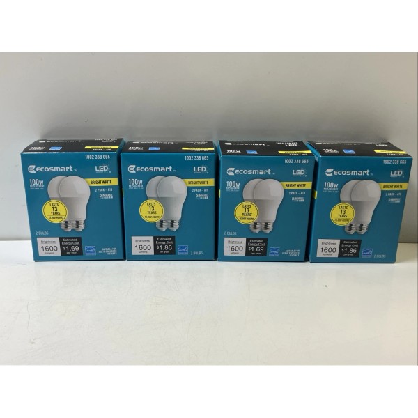 Lot Of (4) Ecosmart 100 Watt Equivalent Dimmable LED Bulb Bright White 2 Pk, 8 Bulbs Total.