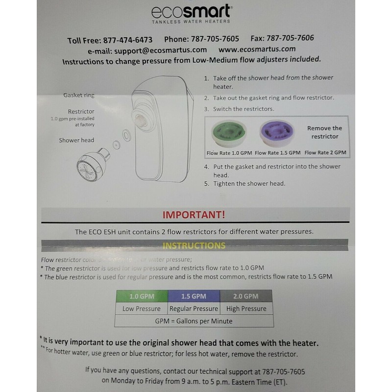 ECOSMART TANKLESS SHOWER WATER HEATER FOR HOMES WITH LOW PRESSURE WATER 1.8 KW