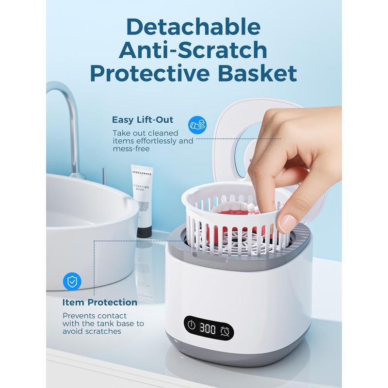 • Cleaning Made Safer: Equipped with a 200ml stainless steel tank, this ultrasonic cleaner provides ample space for thorough cleaning while ensuring durability and corrosion resistance. The included cleaning basket is designed for safely washing small metal items such as jewelry, watch bands, or orthodontic tools, preventing direct contact with the tank and reducing the risk of scratches. Whether for dental devices or delicate accessories, you get a safer, more hygienic clean every time.