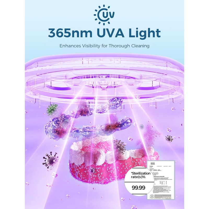 • Designed for Dental-Grade Cleanliness: Our ultrasonic cleaner is designed to balance effectiveness with ease of use, combining a sleek, minimalist appearance with powerful cleaning performance. Retainer cleaner machine equipped with four integrated 365nm UVA lights, this ultrasonic cleaner effectively removes residue and odors from retainers, dentures, and aligners—just like the professional equipment used in dental clinics.