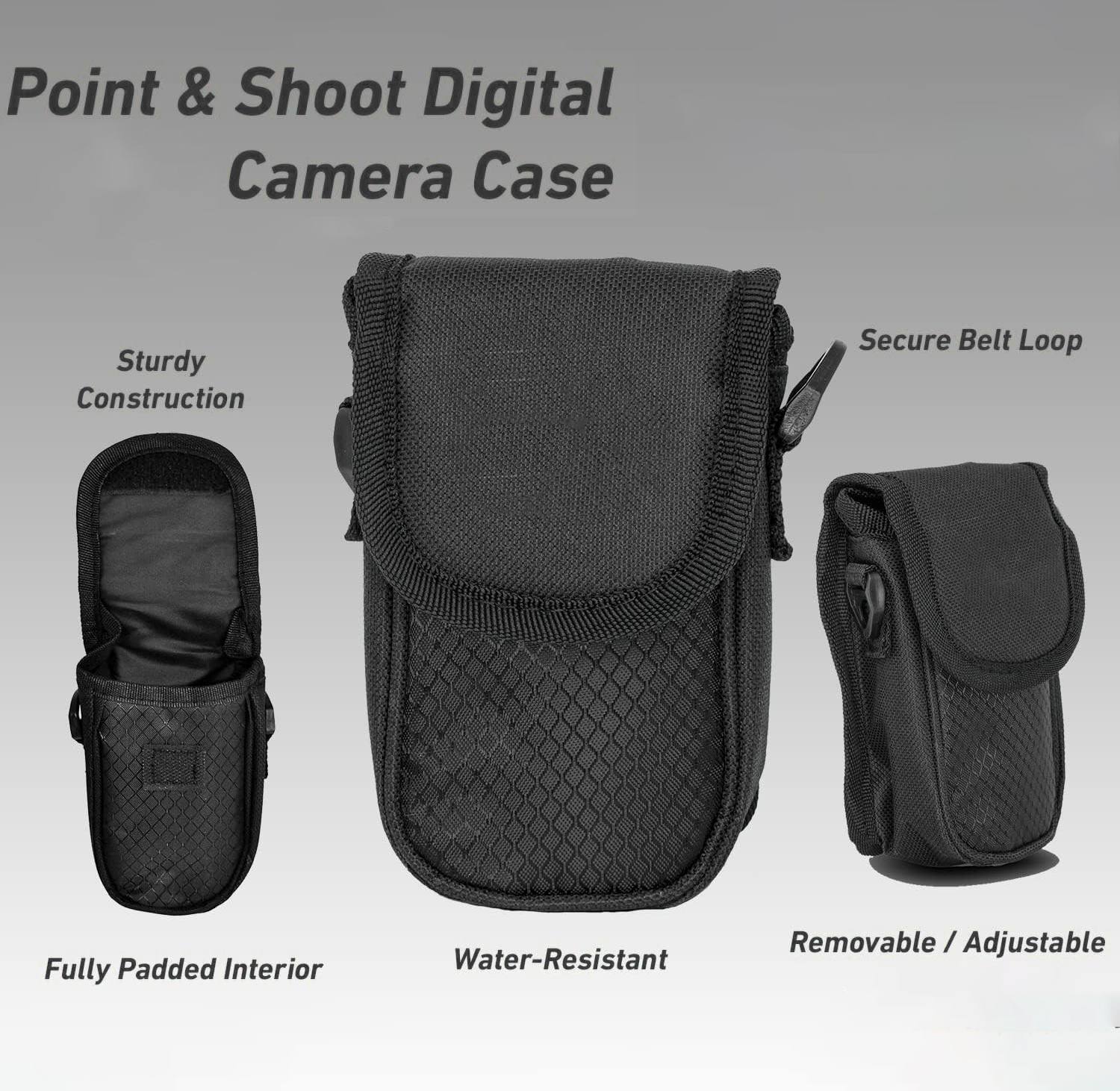Xit XTPSC1 Deluxe Point & Shoot Camera Case is perfect for the small digital cameras. It features a belt loop and an adjustable, removable shoulder strap, as well as a Velcro enclosure.