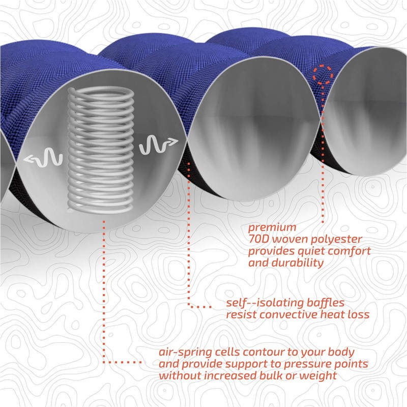- COMFORTABLE IN ANY SLEEPING POSITION - Every body is designed as uniquely as the landscapes we love to explore, and the conforming sleeping pad we’ve developed is uniquely designed to support you however you like to catch your Z’s.. whether it’s sleeping on your side, back, stomach, or curled up like a lamb’s back while you count sheep. With 2.5 inches of loft and an R Value of 2.2, the Hybern8 provides 3 season warmth and comfort you can count on to help get you the shuteye you deserve.