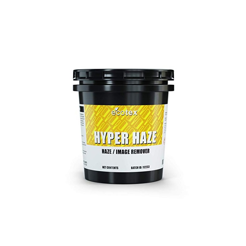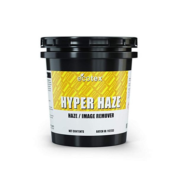 - SIMPLE AND EASY TO USE - Ecotex Hyper Haze Will Easily Remove All Plastisol Ink Stains, Oils, and Residues. This two in one formula will also Degrease Your Screen Printing Screen Mesh In One Simple Step. Simply Wipe On, Let Sit For 1 Minute and Wash Off.