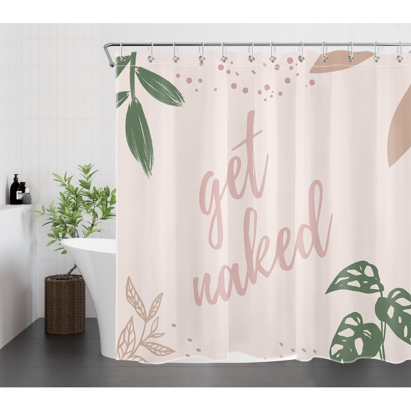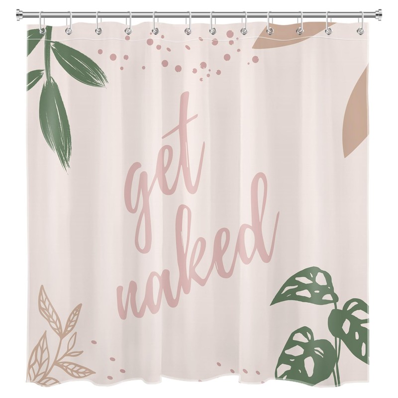 ECOTOB Get Naked Mid Century Shower Curtain Green Leaves with Pink Funny Quote Minimalist Shower Curtain for Bathroom Modern Simple Fabric Waterproof Polyester Bath Curtain with Hooks, 72x72 inch