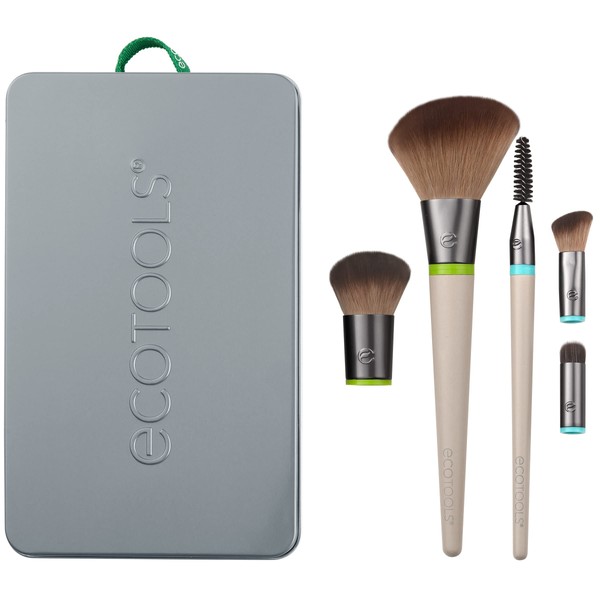 EcoTools Daily Essentials Face Kit Interchangeables Makeup Brush Set with 5 Brushes, 2 Handles, and Storage Tin
