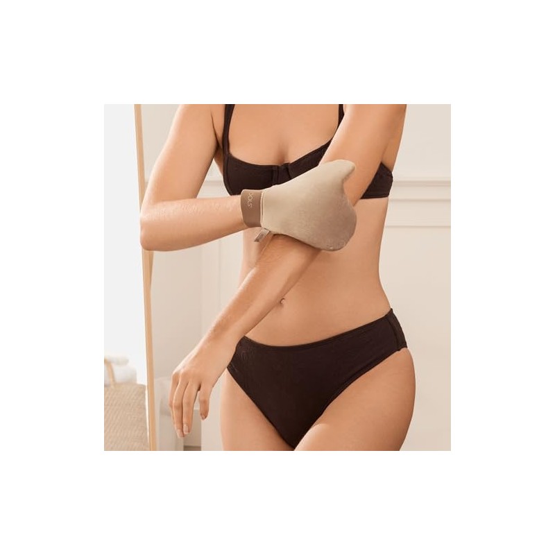 - Self-Tanning Mitt is best used with tanning mousse, lotions, waters, and mists