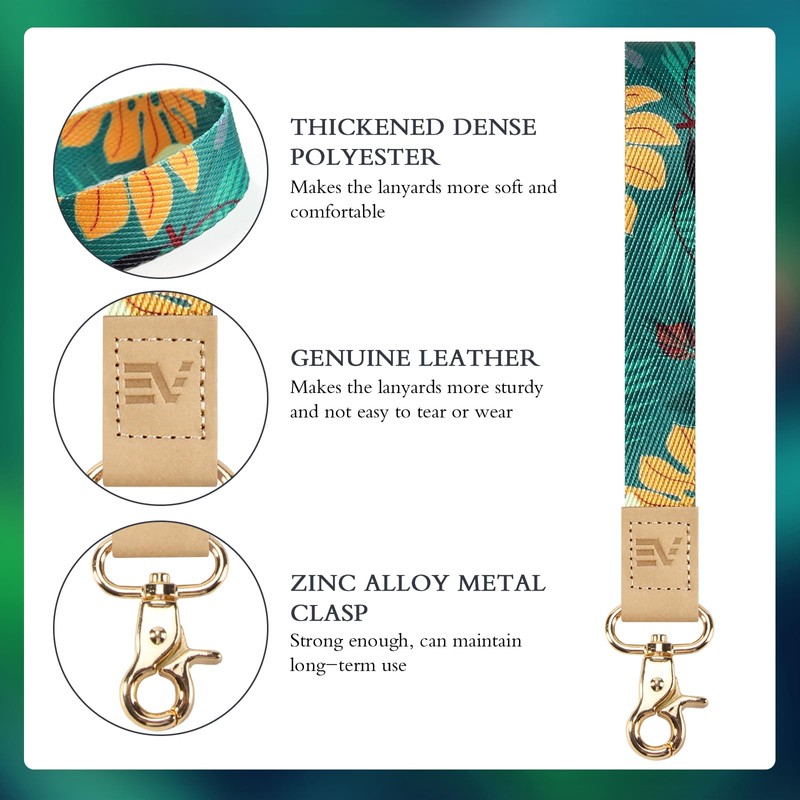 - 【HIGH QUALITY MATERIAL】 :Keychain lanyard is made of thickened dense polyester with printing patterns which is washable and colourfast. Genuine leather makes the key lanyard to be sturdy and longevity. Zinc alloy metal clasp is strong enough and won’t get stuck, can maintain long-term use.