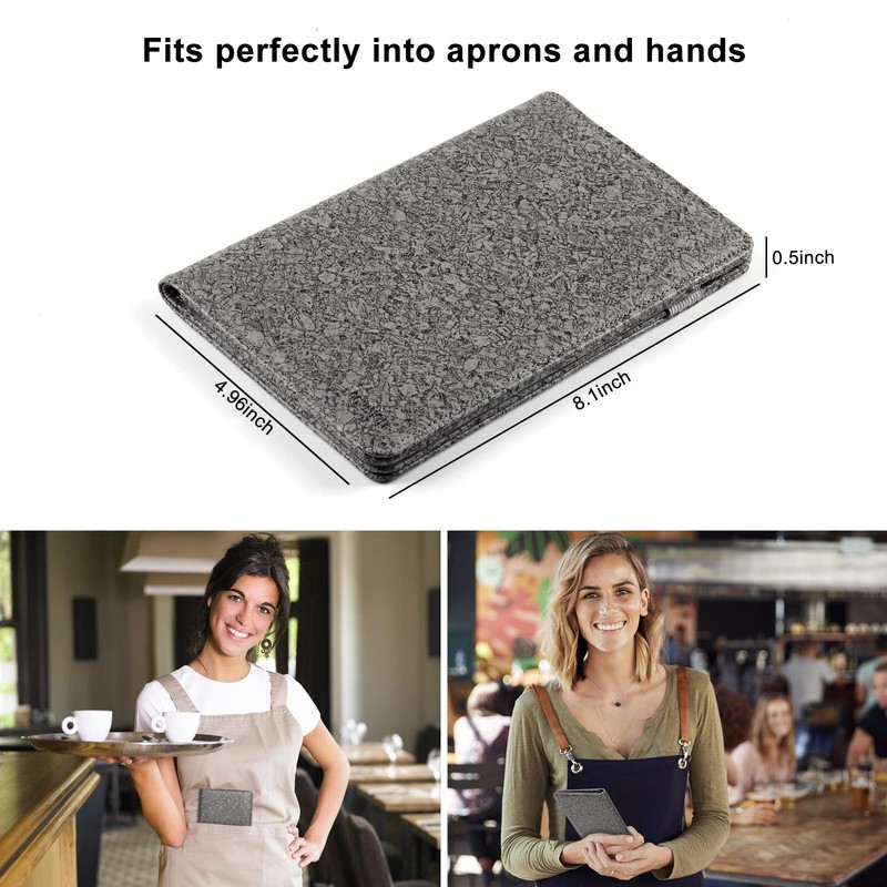 - Waterproof Leather Material: The waitress book is made of premium sturdy PU leather, Eco-friendly and odorless, features excellent workmanship and tight stitching, easy to clean. Plus an elastic pen loop to be a nice waitstaff organizer to help you hold the pen that is always away from home and improve the service speed.