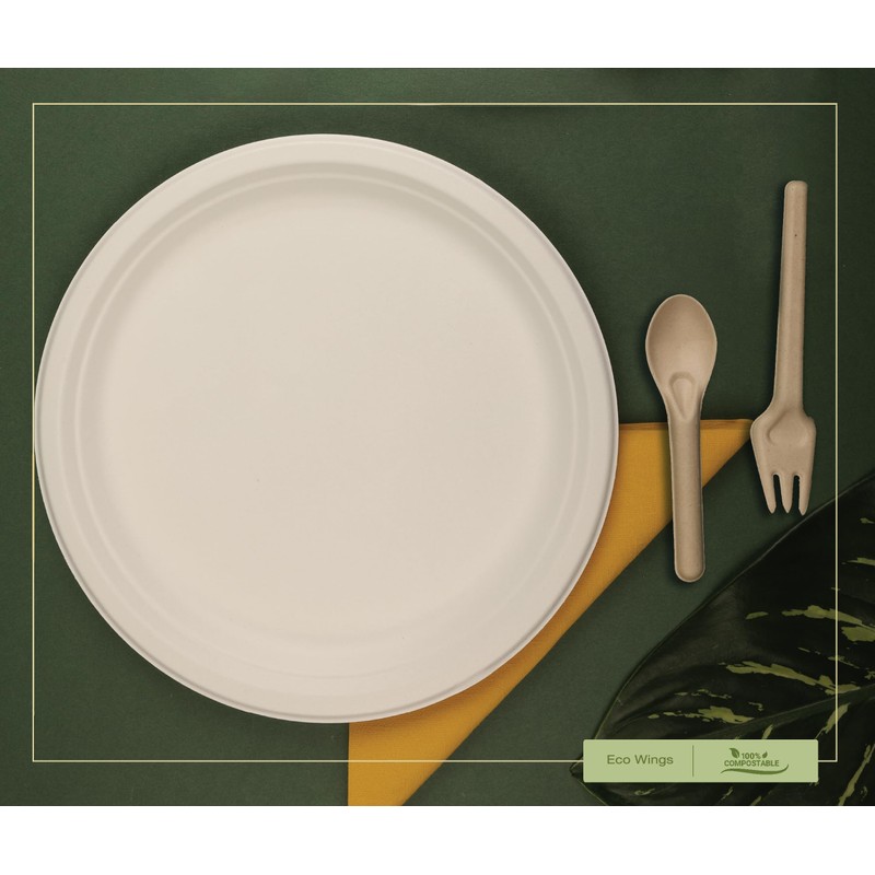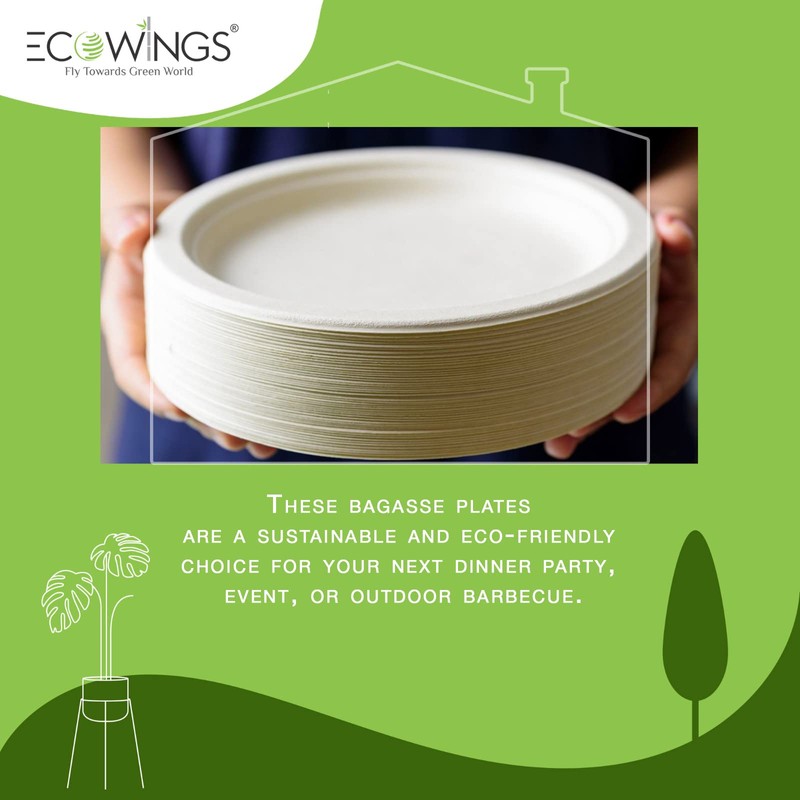 ECOWINGS 10 Inch Disposable Plates (Pack of 50) - EcoFriendly, Compostable and Biodegradable Plates - Bagasse Party Tableware - Great Alternative to Paper Plates