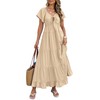ECOWISH Womens Summer Maxi Dresses 2025 Casual Flutter Sleeve V Neck Tie Front Wedding Guest Vacation Flowy Long Dress with Pocket Khaki Medium