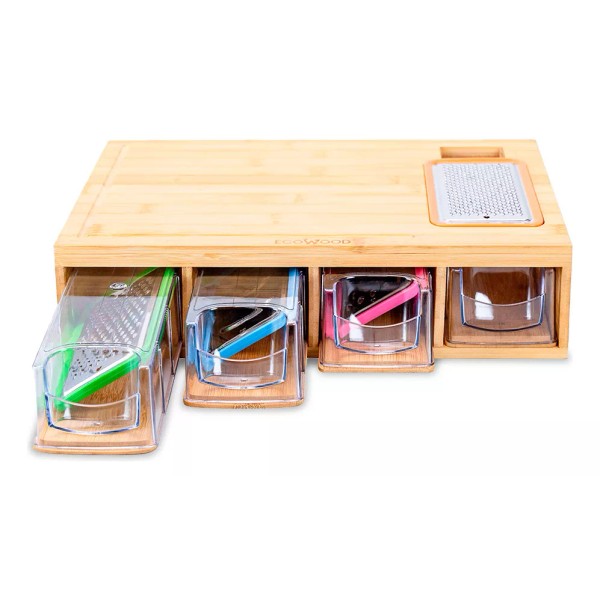 EcoWood Tabla Para Picar De Bambú Con Contenedores Y Ralladores Color Natural Tabla Con Compartimentos
