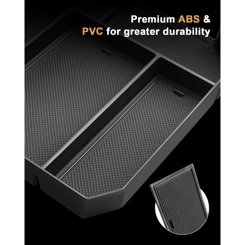 - [High-Durability with Anti-Slip Protection] Constructed from premium ABS material, this organizer for 2022-2025 Tundra offers exceptional durability. Inside, anti-slip PVC mats hold items securely in place, reducing noise and preventing movement.