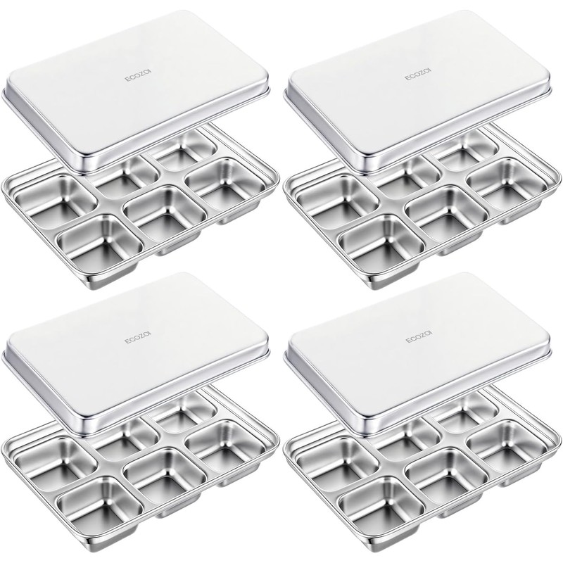 ecozoi Stainless Steel Ice Cube Trays, 4 Pack with 24 Ice Cube Slots - Easy Release, Plastic-Free, Zero Waste