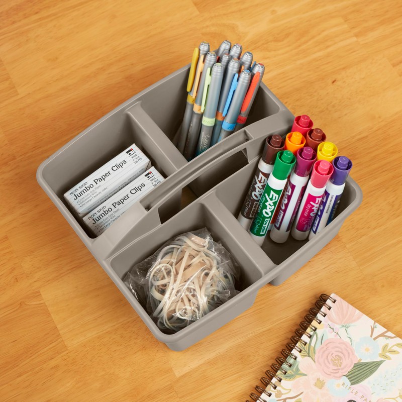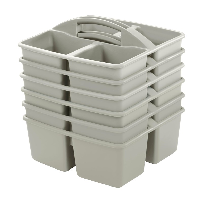 ECR4Kids 4-Compartment Medium Caddy, Storage Organizer, Grey, 6-Pack