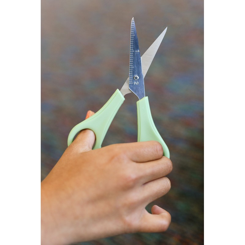 - Ruler Guide on Blade — scissor blades have a ruler guide stamped onto one side for precise cutting