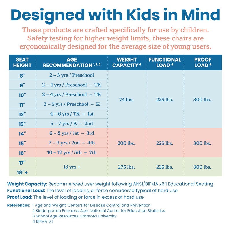 - Certified Safe: GREENGUARD [GOLD] Certified for low VOCs, TSCA and CPSIA compliant, meets the requirements of ANSI/BIFMA X6.1 for the safety, durability, and structural adequacy of Educational Seating