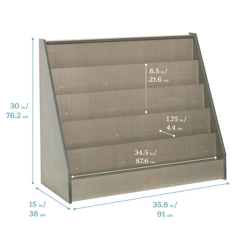 ECR4Kids Single-Sided Book Display, Classroom Bookshelf, Grey Wash