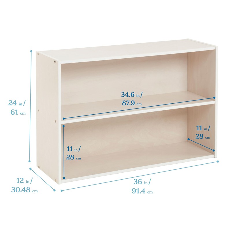 ECR4Kids Streamline 2-Shelf Storage Cabinet, 24in, Kid's Bookshelf, White Wash