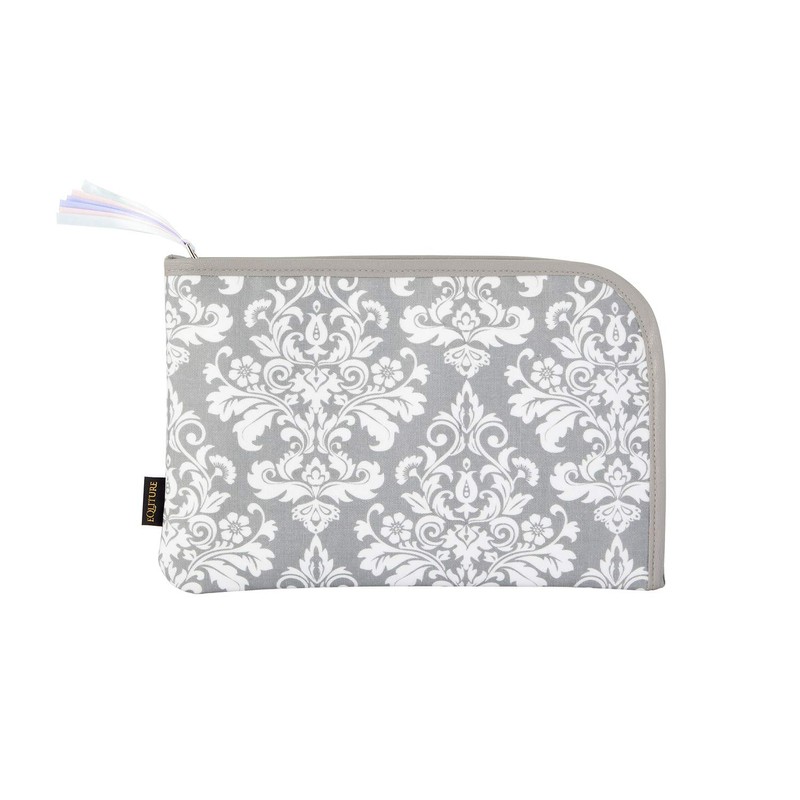Ecriture Maternal and Child Notebook Case, L-Shaped, Zipper, For 2 People, Silver Damask