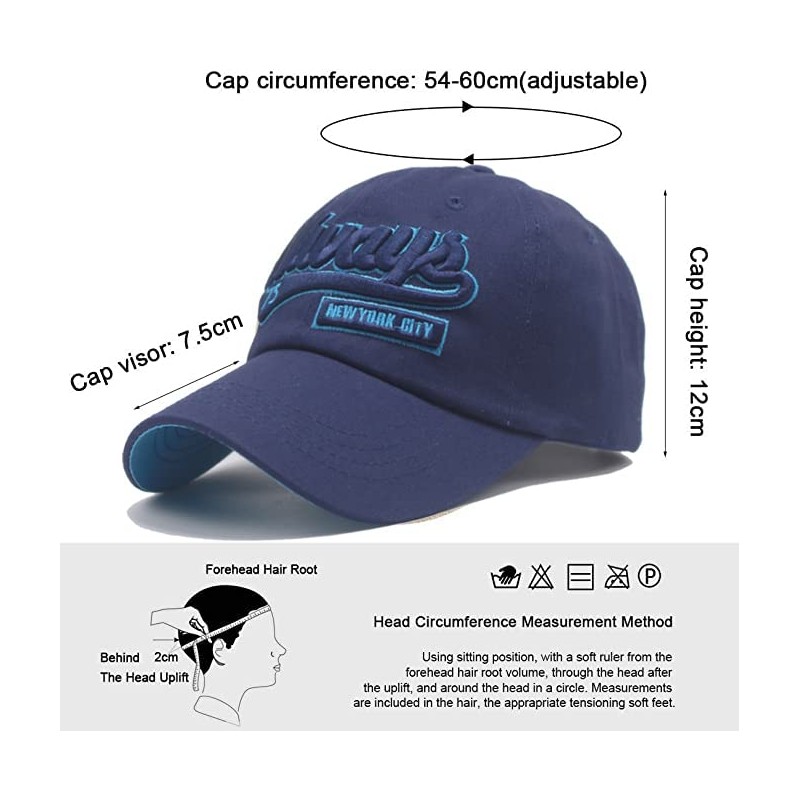 The men's cap has a metal buckle on the back to adjust the size, women's baseball cap suitable for all head sizes, hat circumference 53-62 cm, comfortable cap.