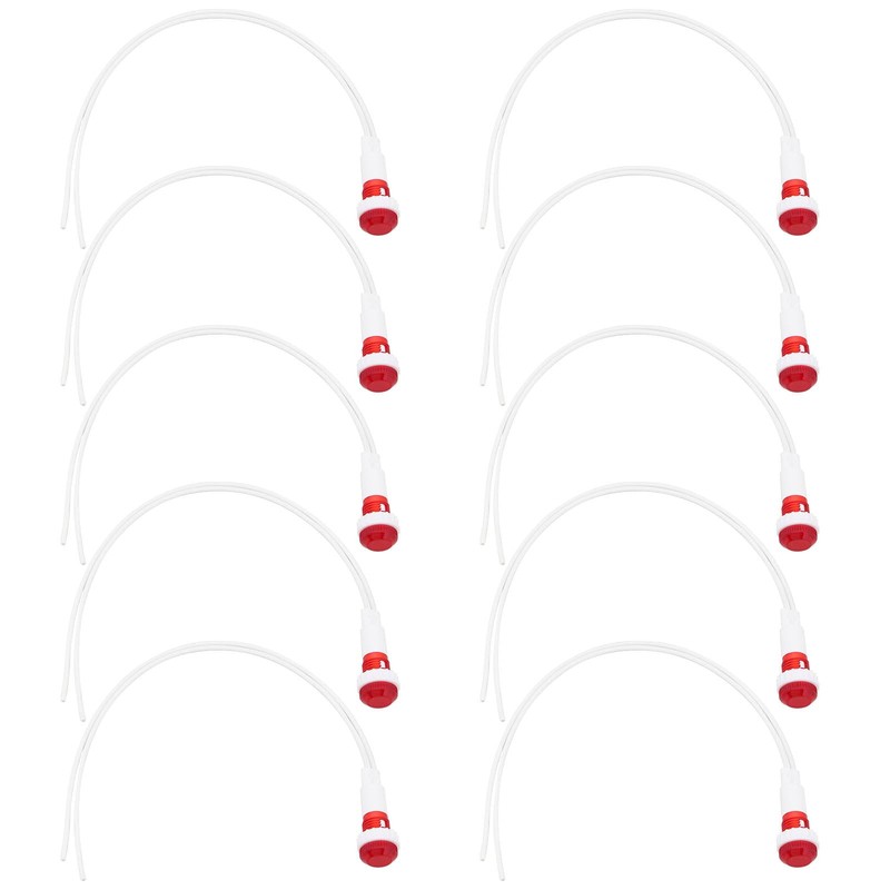 ECSiNG 10PCS Red Neon Indicator Lamps 6W 220-240V Mounting Hole 10mm 36.1x12.7mm Wire Length 20cm Neon Warning Lamps for Automotive and Marine Equipment
