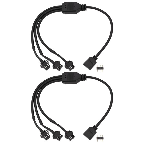 - Versatile compatibility: with 1 3-pin female connector on one end and 3 3-pin SM female plugs on the other end. Compatible with 5V ARGB systems, it is perfect for enhancing the look of your gaming rig, computer case, or any other device that supports addressable RGB lighting.