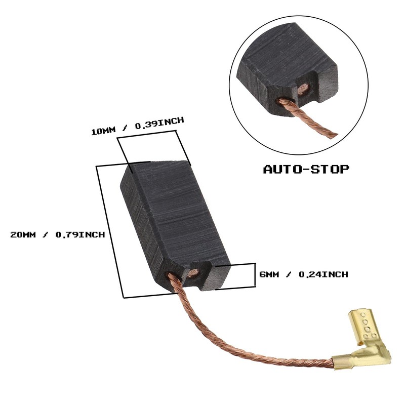 -[Dimension]: The size of the carbon brush is 6 x 10 x 20 mm / 0.24 x 0.39 x 0.79 inches.