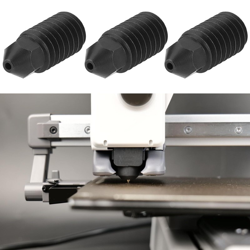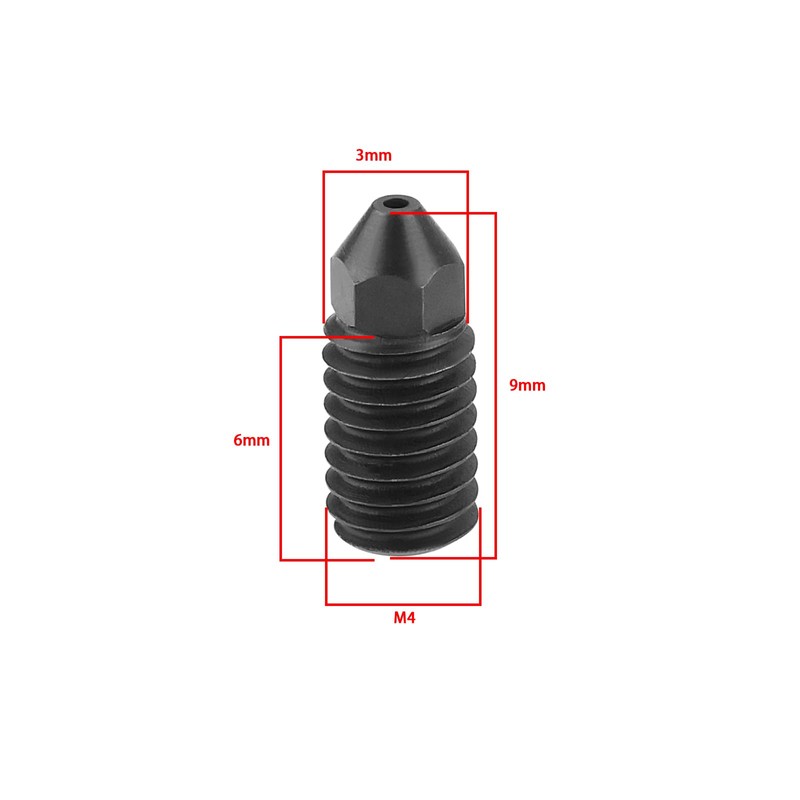 - Hardened Steel Nozzle: 0.6mm black nozzle with outstanding wear, heat, and corrosion resistance, perfect for high-temperature 3D printing. Size is 9(L)*3(W)mm.
