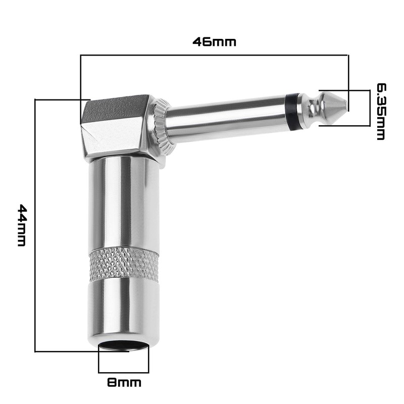 • 6.35mm 1/4'' right angle single male plug welding adapter: It is a good helper for extending cable length. Simply connect this adapter between one cable to create a convenient long cable.