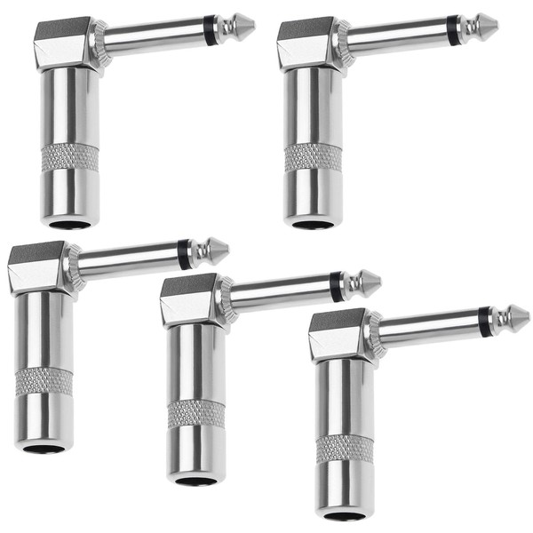 ECSiNG 5PCS 6.35mm 1/4" 90 Degree Right Angle Audio Plug Solder Jack Connector Adapter for Electric Guitar Mixer Loudspeaker Keyboard KTV Equipment