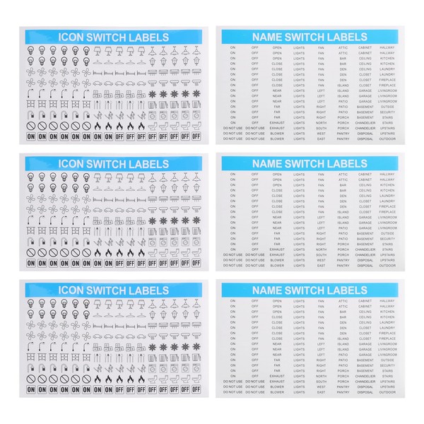 - Complete Label Set: Includes diverse light switch and electrical breaker panel patterns and text for clear functionality labeling.