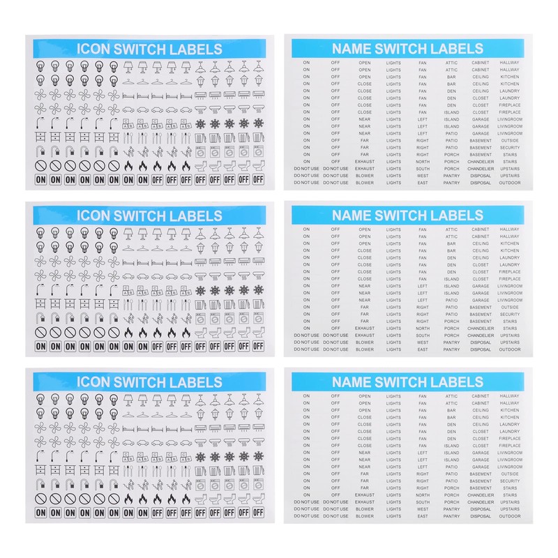-Complete Label Set: Includes diverse light switch and electrical breaker panel patterns and text for clear functionality labeling.