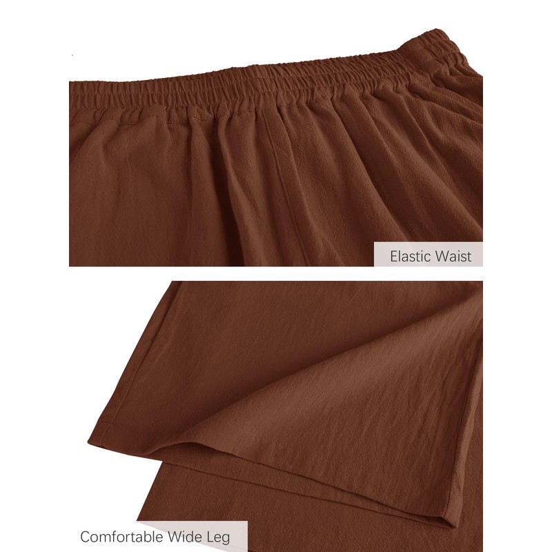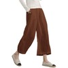 ECUPPER Womens Cotton Cropped Pants Loose Fit Wide Leg Capri Casual Plus Size Elastic Waist Trousers Brown 16