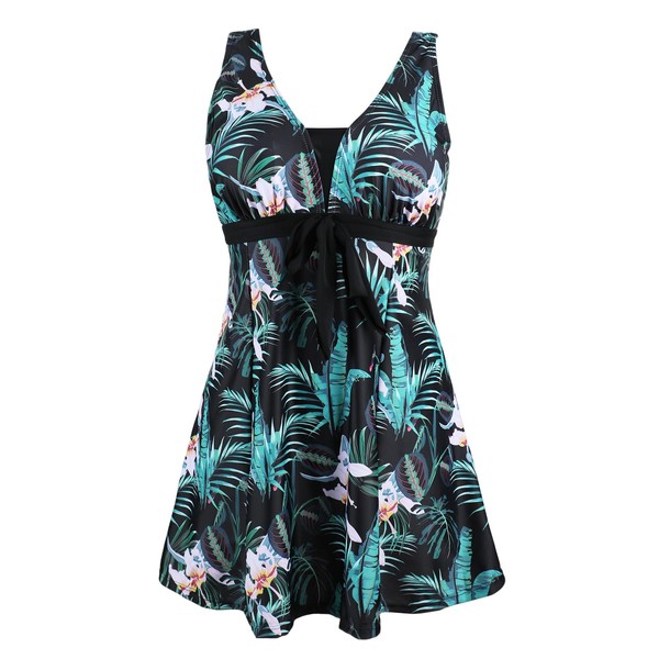 Ecupper Womens One Piece Swimdress Plus Size Shaping Body Swimsuits Printed Swimwear with Short Floral Green L