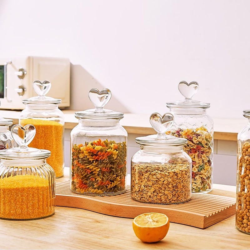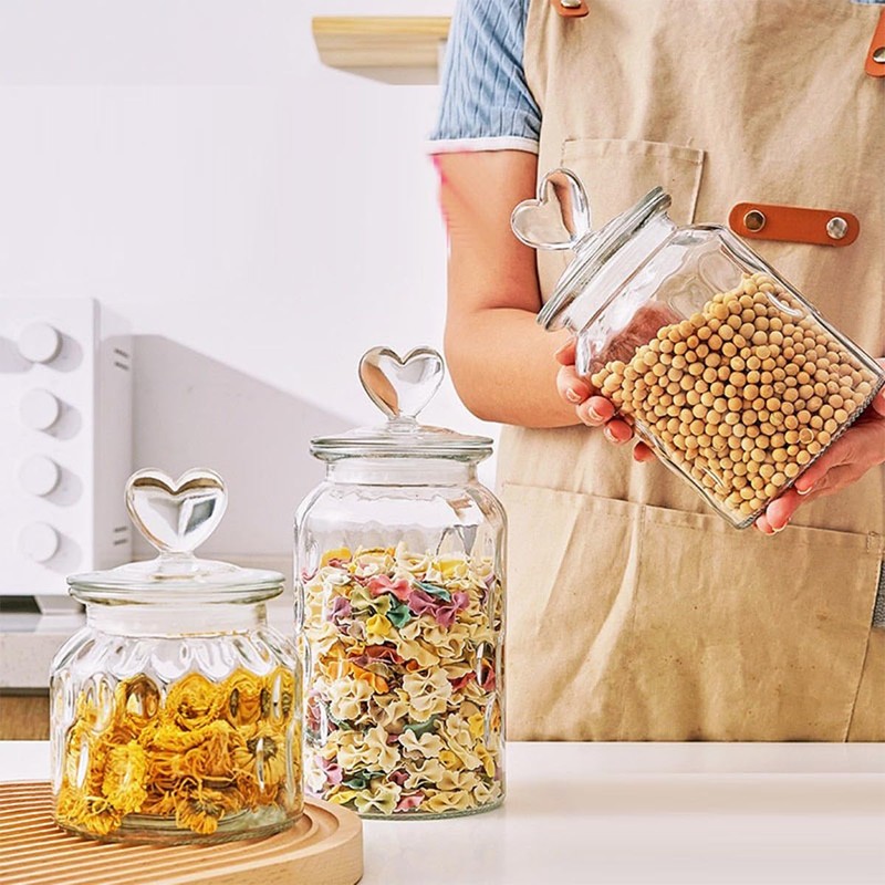 - Decorative Jar: Glass jar with a handle shaped like a heart, the cute and charming design will add a litter warm for your kitchen.