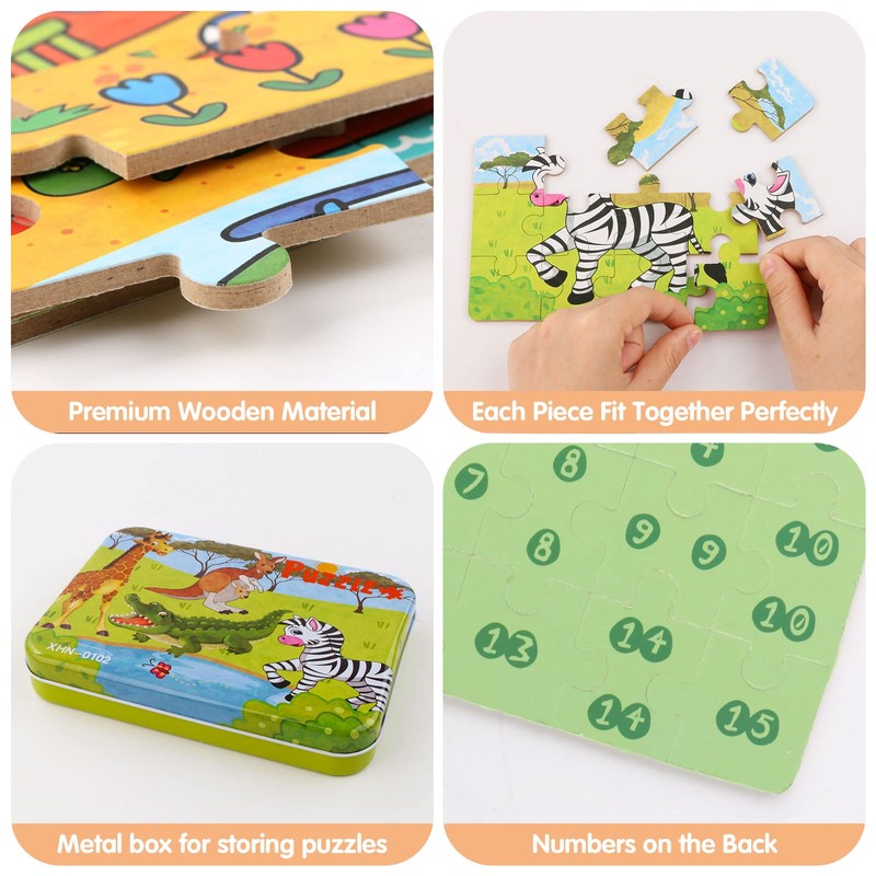 - Suit for Kids Age 3-5 Years Old: This wooden jigsaws are great gift for little boys and girls, the puzzles for toddlers are great gift choices for birthday, Christmas and other holidays. There comes a metal box for storing puzzles.