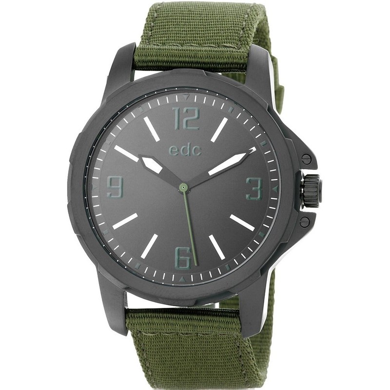 - Zifferblattfarbe: Schwarz - Wasserdicht: 3 atm - Uhrwerk: Quarz - Schließe: Dornschließe - Marke: edc by Esprit - Glas: Mineralglas - Gewicht in Gramm: 70,70 - Gehäusematerial: Edelstahl - Gehäusehöhe in mm: 9,00 - Gehäuseform: Rund - Gehäusefarbe: Schwarz - Gehäusedurchmesser in mm: 48,00 - Datumsanzeige: Ohne - Armbandmaterial: Nylon - Armbandlänge in cm: 25,00 - Armbandfarbe: Grün - Armbandbreite in mm: 22,00 - Anzeigeformat: Analog
