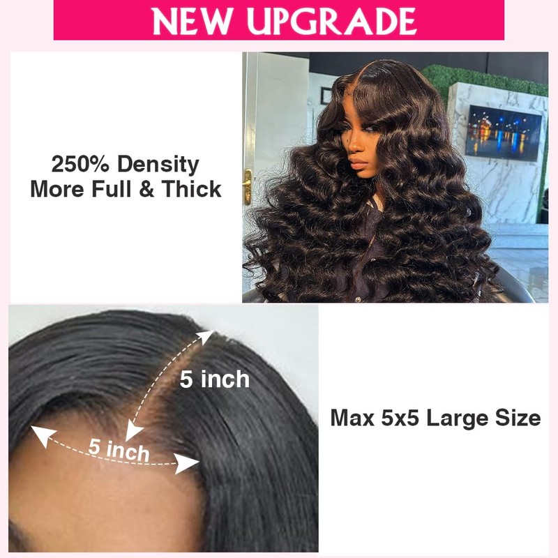 - 5x5 HD Lace Closure Wigs Human Hair Material250% Density Body Wave Lace Front Wigs Human Hair,Cut From the Young Girls' Donors Directly,Full and Thick,No Smell,No Tangle and Shedding Free.Can be Dyed,Straightened,Bleached and Restyled as Your Own Hair.
