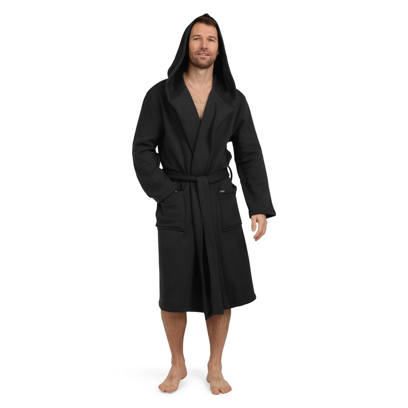 Eddie Bauer Mens Hooded Robe - Mens Luxury Robe with Hood and Pockets | Bathrobe for Men | Fleece Men's Robe | Mens Bath Robe (US, Alpha, Large, X-Large, Regular, Regular, Black)