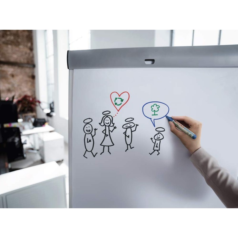 - The set contains 4 EcoLine flipchart markers - black, red, blue and green; at least 90% of the total plastic parts are made from recycled material; refillable