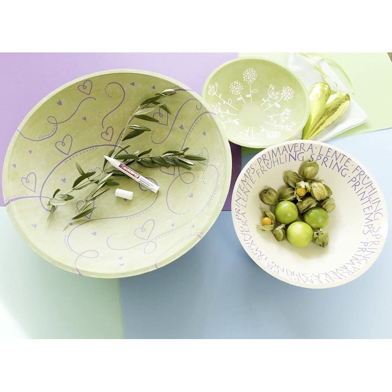 Deco markers are paint markers containing a permanent, low-odour water-based pigment ink. Good for highly opaque, silk-matt drawings and inscriptions on almost all smooth and porous surfaces, in particular wood and terracotta. If adhesion is good - above all on porous surfaces - the design will also withstand exposure to the elements (wind, rain). Works of art can be removed from almost all sealed surfaces, e.g. glass, with spirit. Can be varnished using clear, solvent-based varnishes. The ink flow is valve-regulated. eco marker with bullet tip: 2 - 4 mm.. Permanent water-based pigment ink with neutral smell_ providing an opaque lacquer finish. Extremely lightfast and heat-resistant. Valve-controlled ink-flow. Features -Writing colours: White -Colour of product: Black, Red, White -Stroke width (min): 2 mm -Stroke width (max): 4 mm