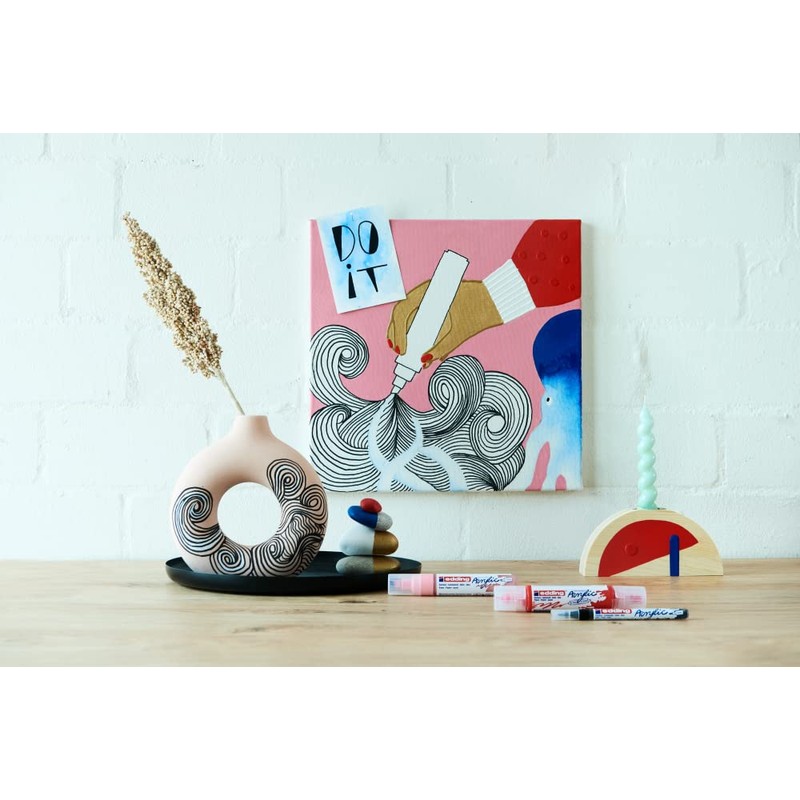 - Fine acrylic pen for easy, spontaneous drawing on light or dark surfaces; ideal for materials such as canvases, acrylic paper, painting boards and terracotta